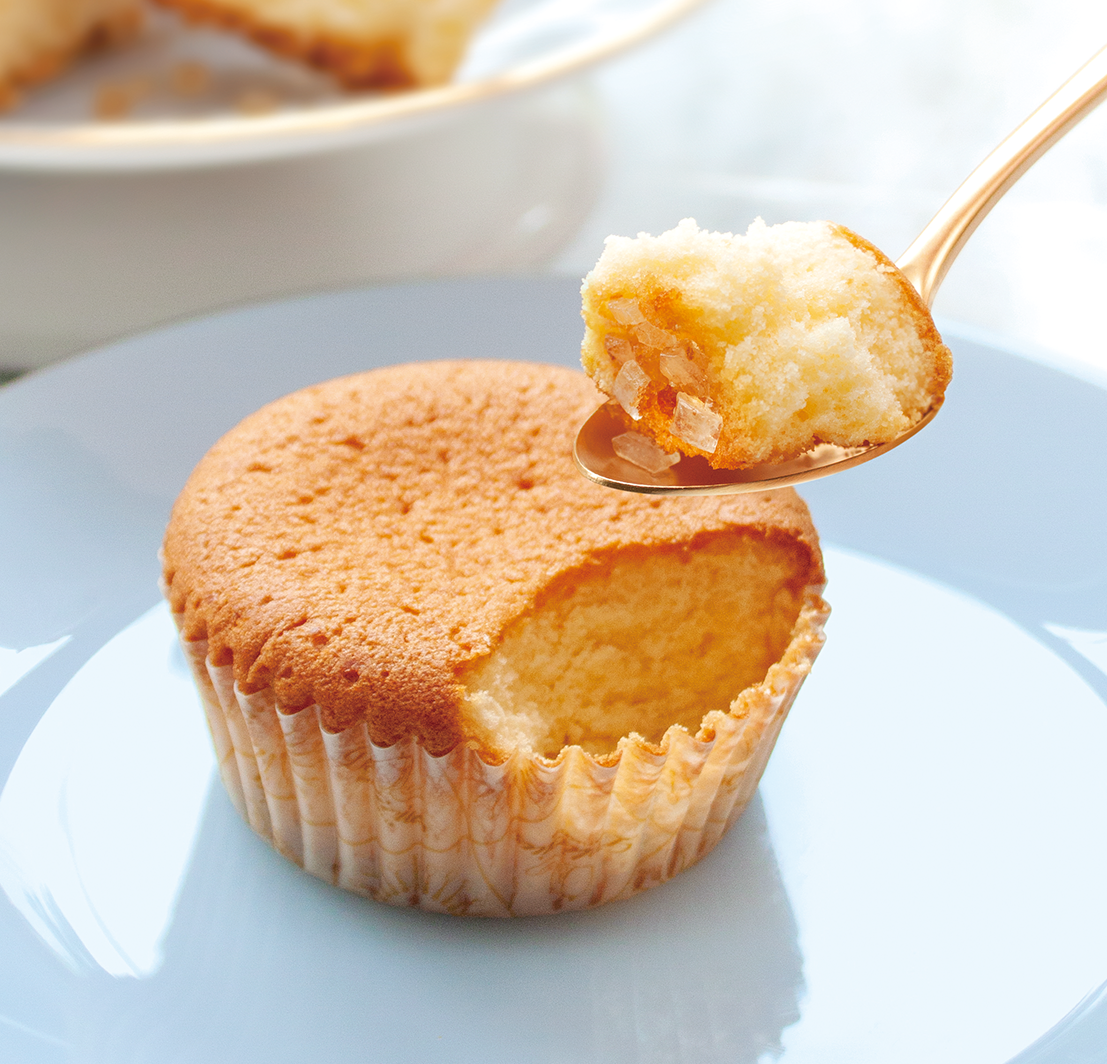 底に黒糖ザラメが敷き詰められています。 どうぞお気に入りのスプーンですくってお召し上がりください。 キメ細やかな生地に黒糖のコクのある甘みがじんわりと染み込み、溶けていくのをお楽しみ頂けます。